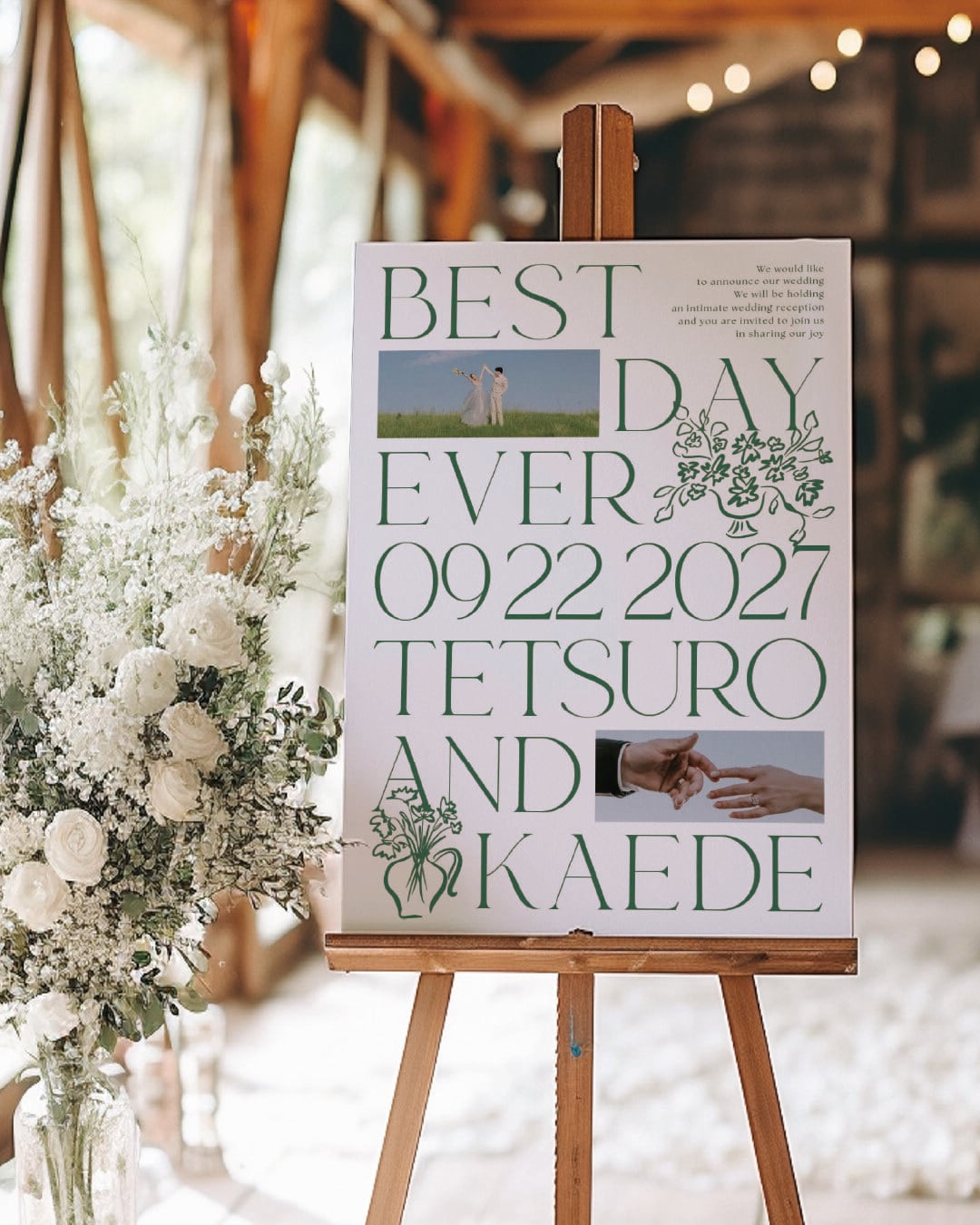 「Best Day Ever」の言葉が、結婚式という特別な日をまっすぐに伝えます。