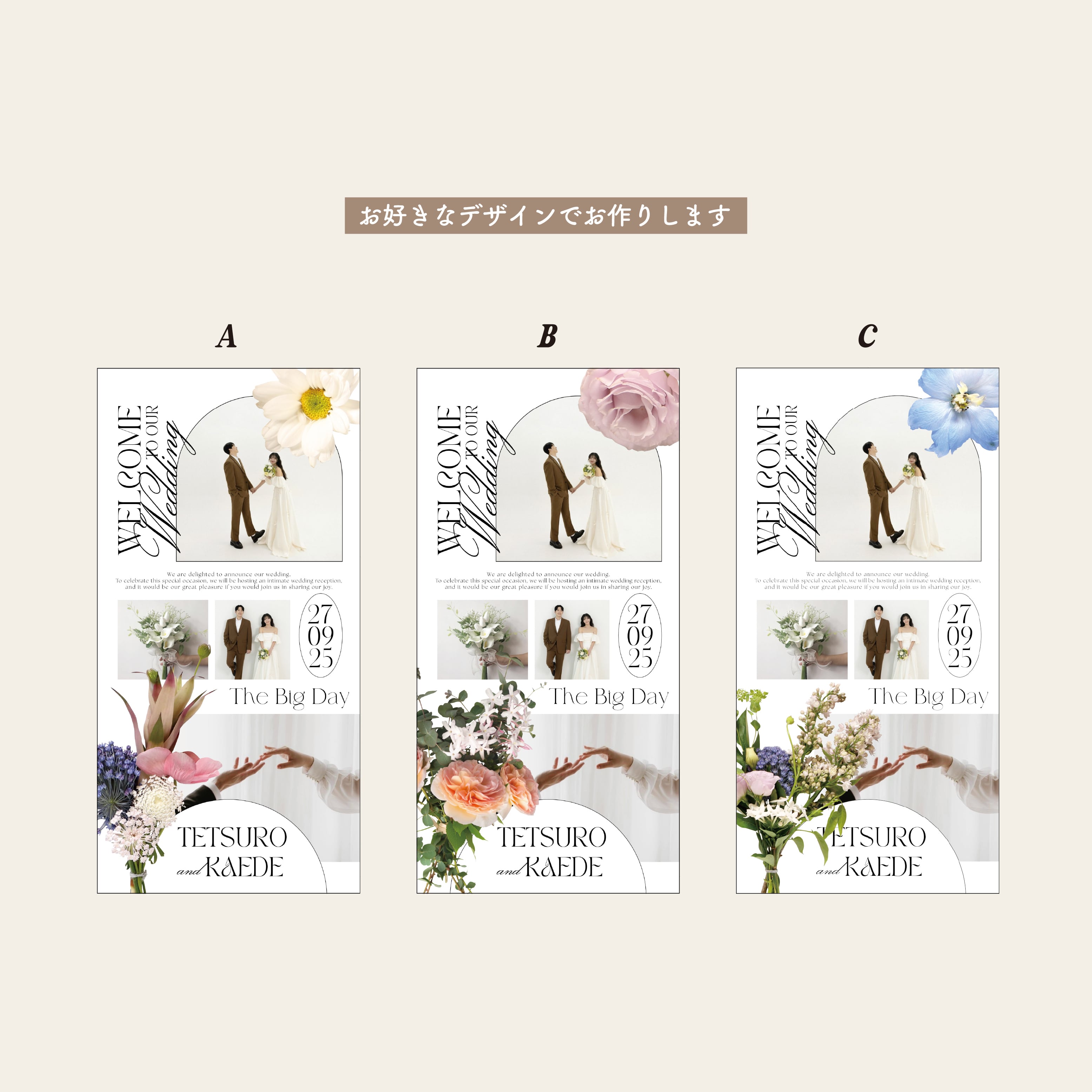 おふたりのお写真や名前や日付を入れることで、