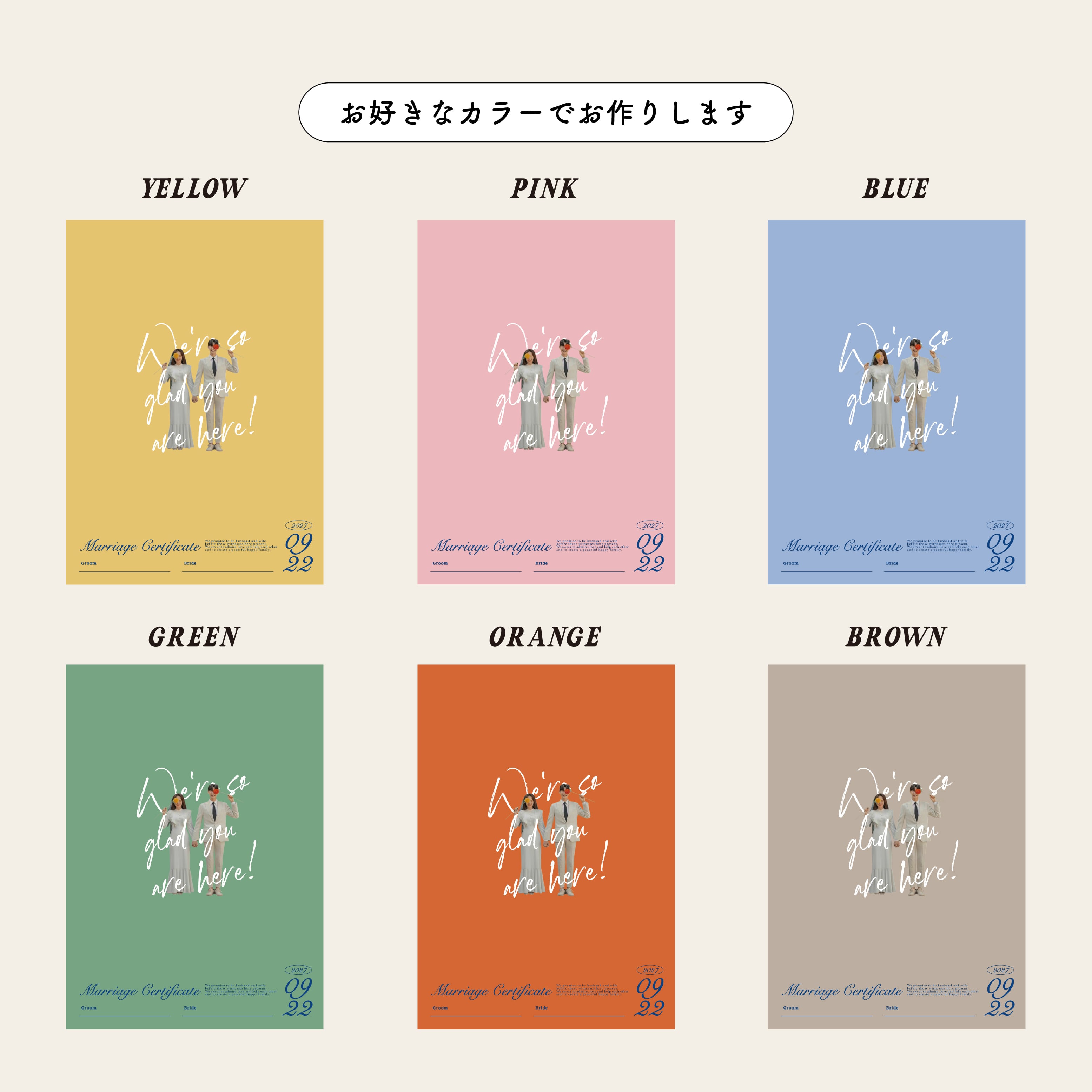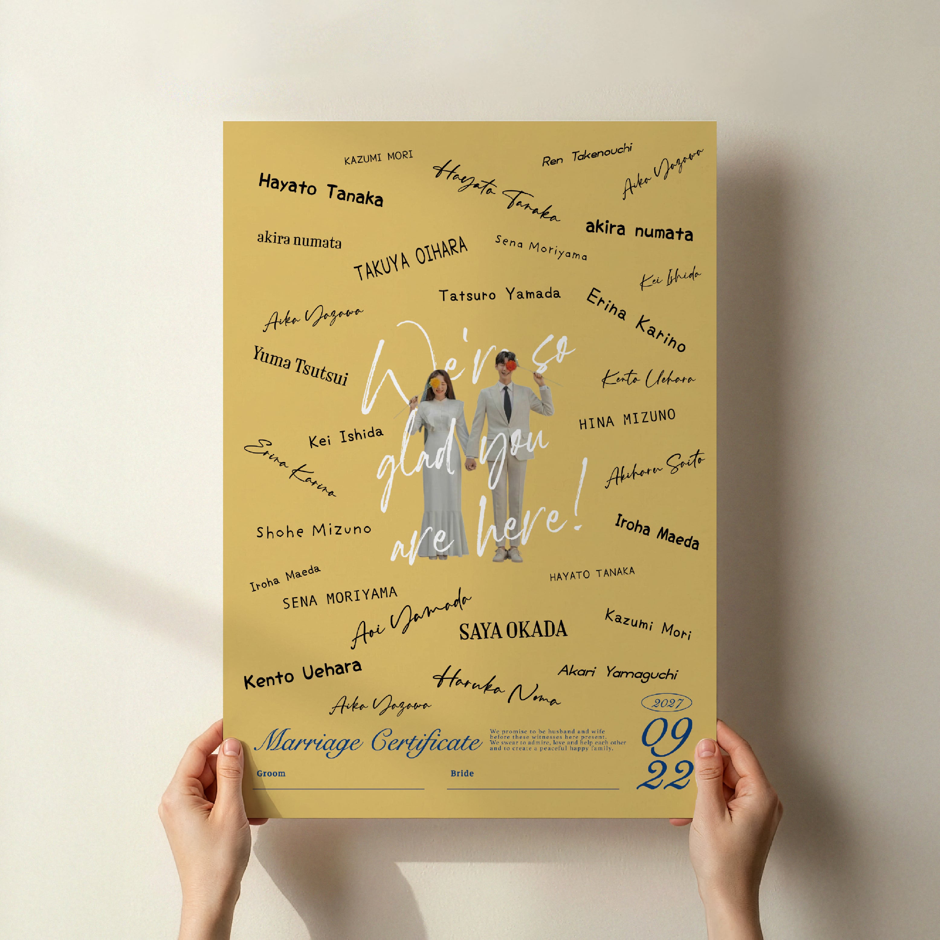 ゲストからのサインやメッセージで完成する、世界にひとつだけの結婚証明書。