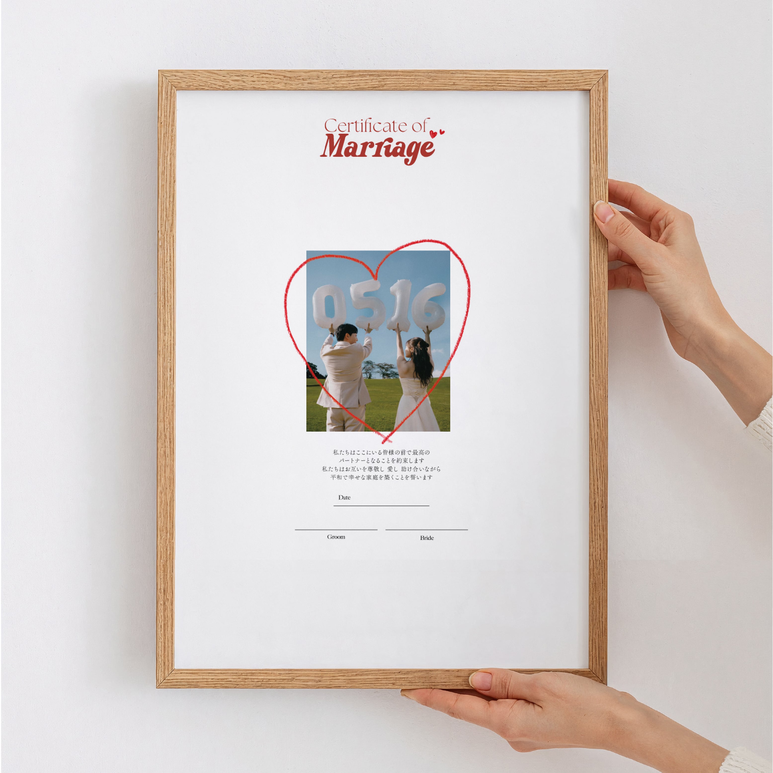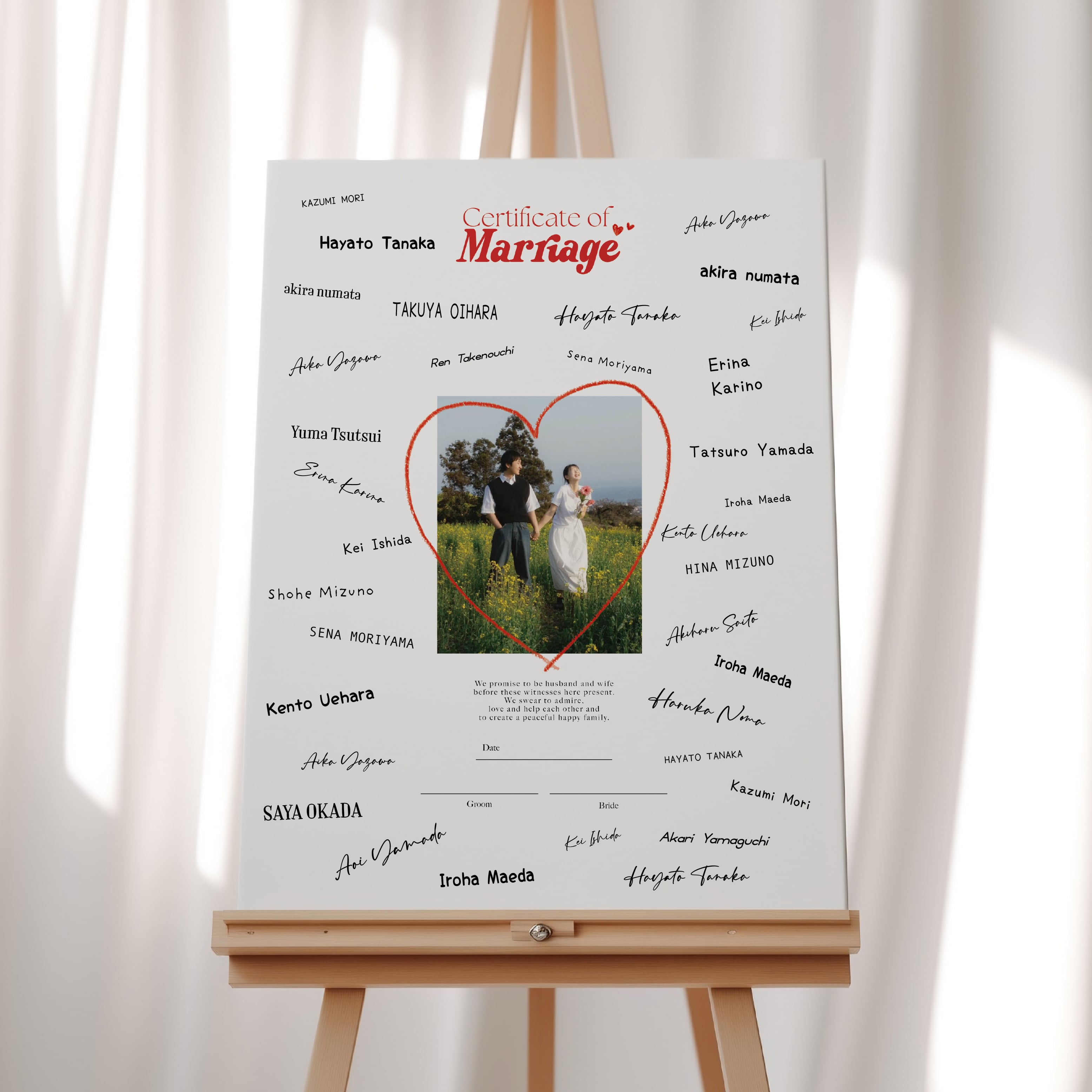 ゲストからのサインやメッセージで完成する、世界にひとつだけの結婚証明書。