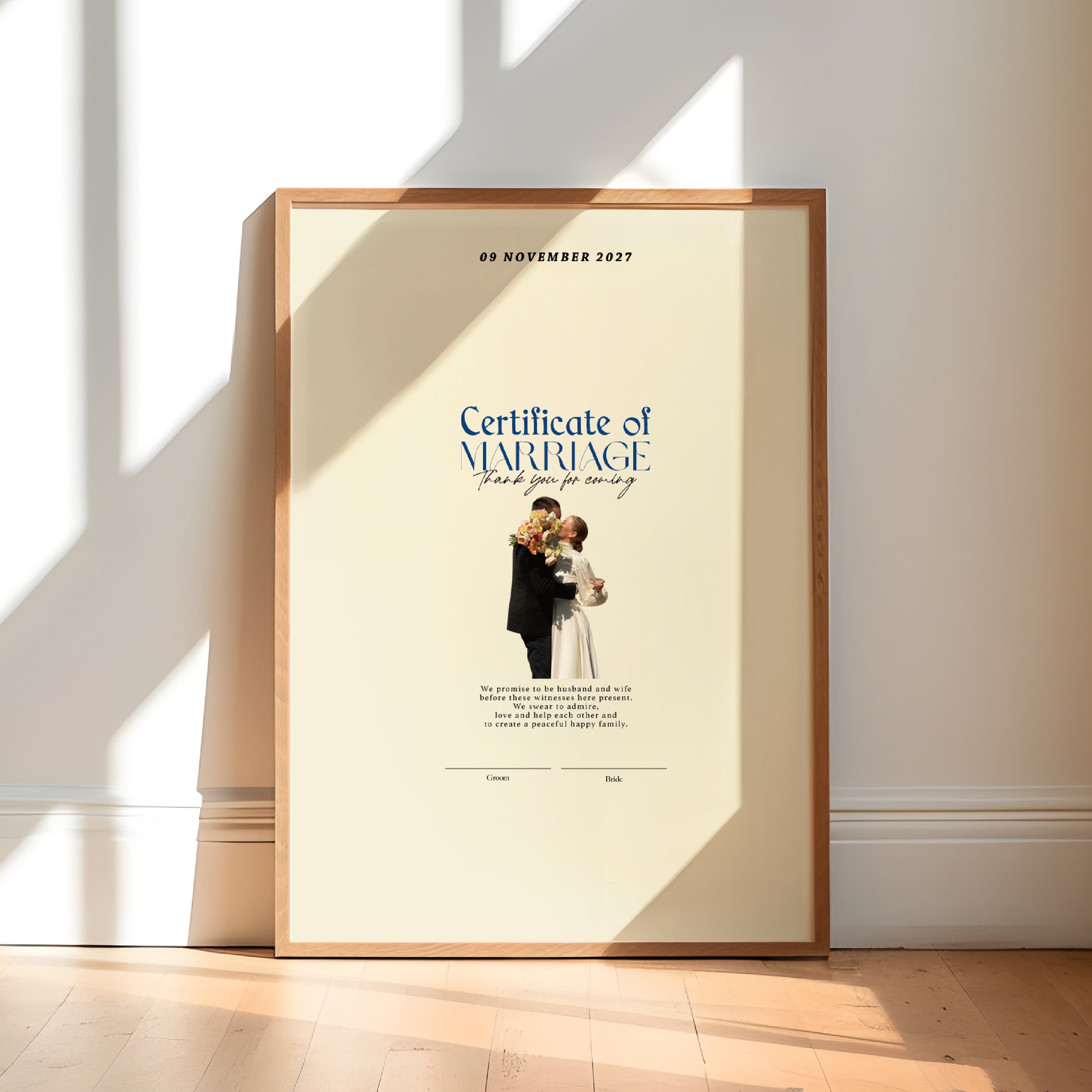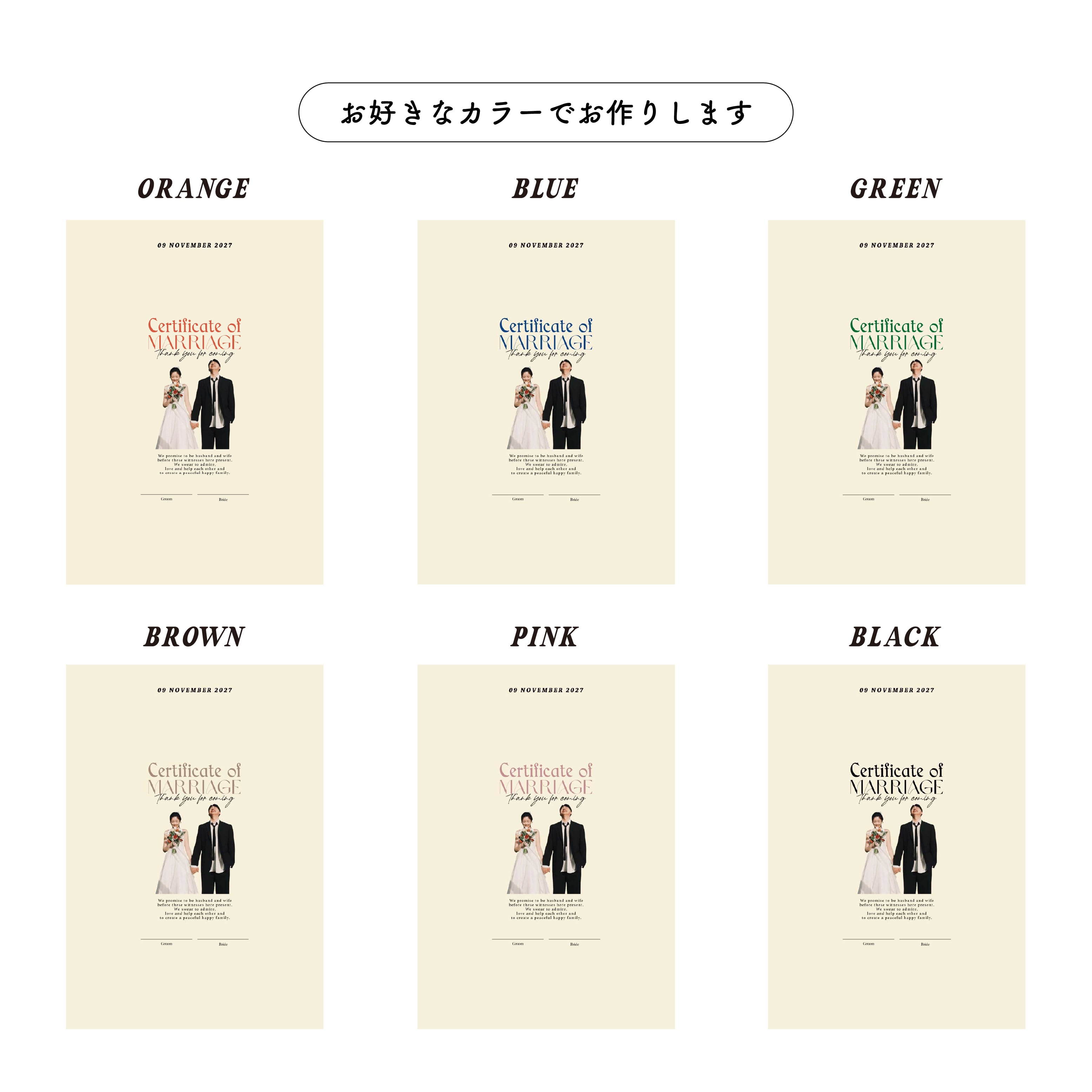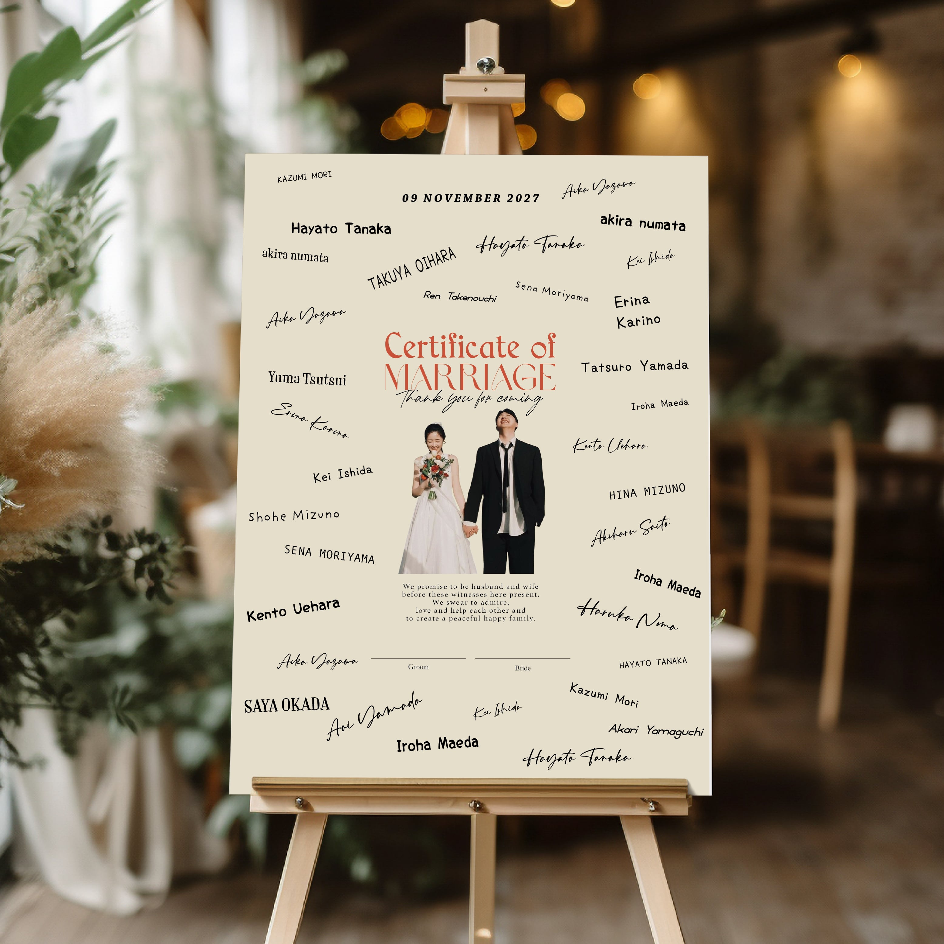 ゲストからのサインやメッセージで完成する、世界にひとつだけの結婚証明書。