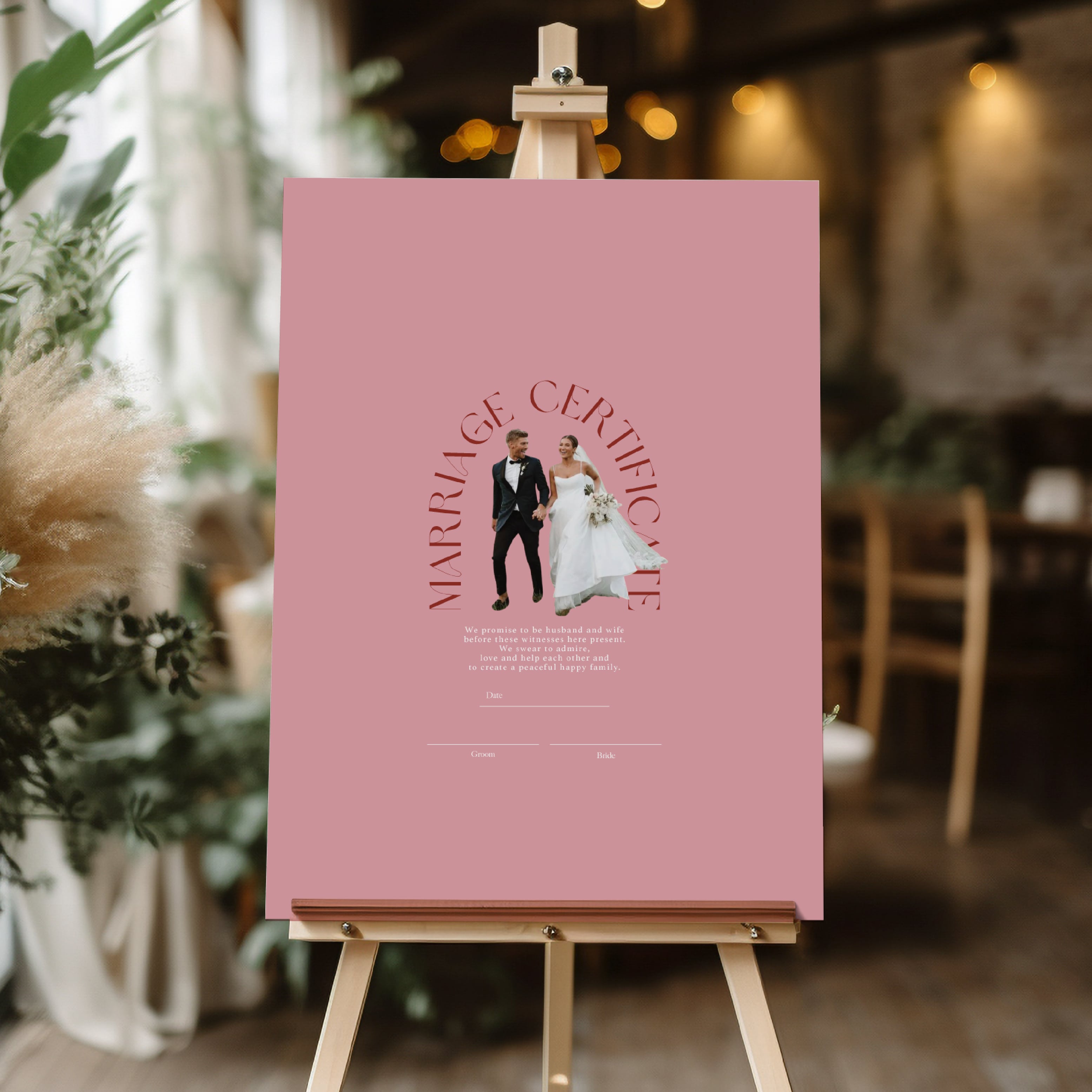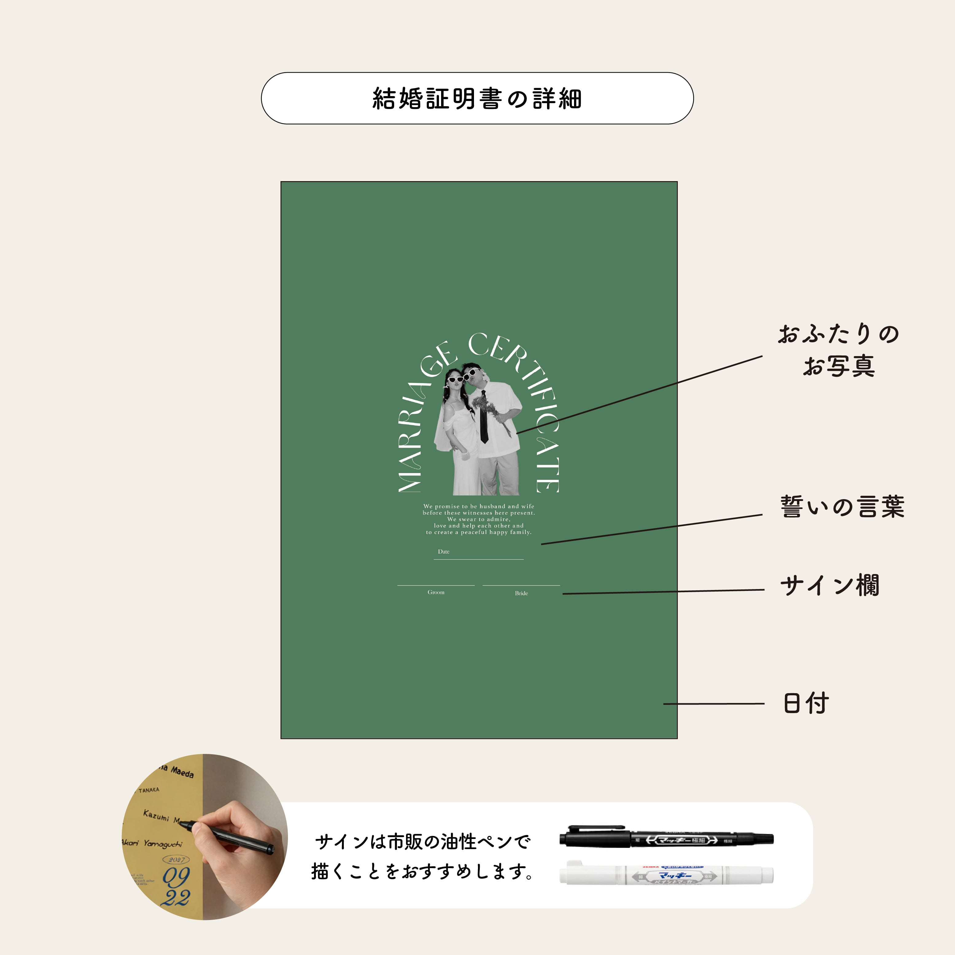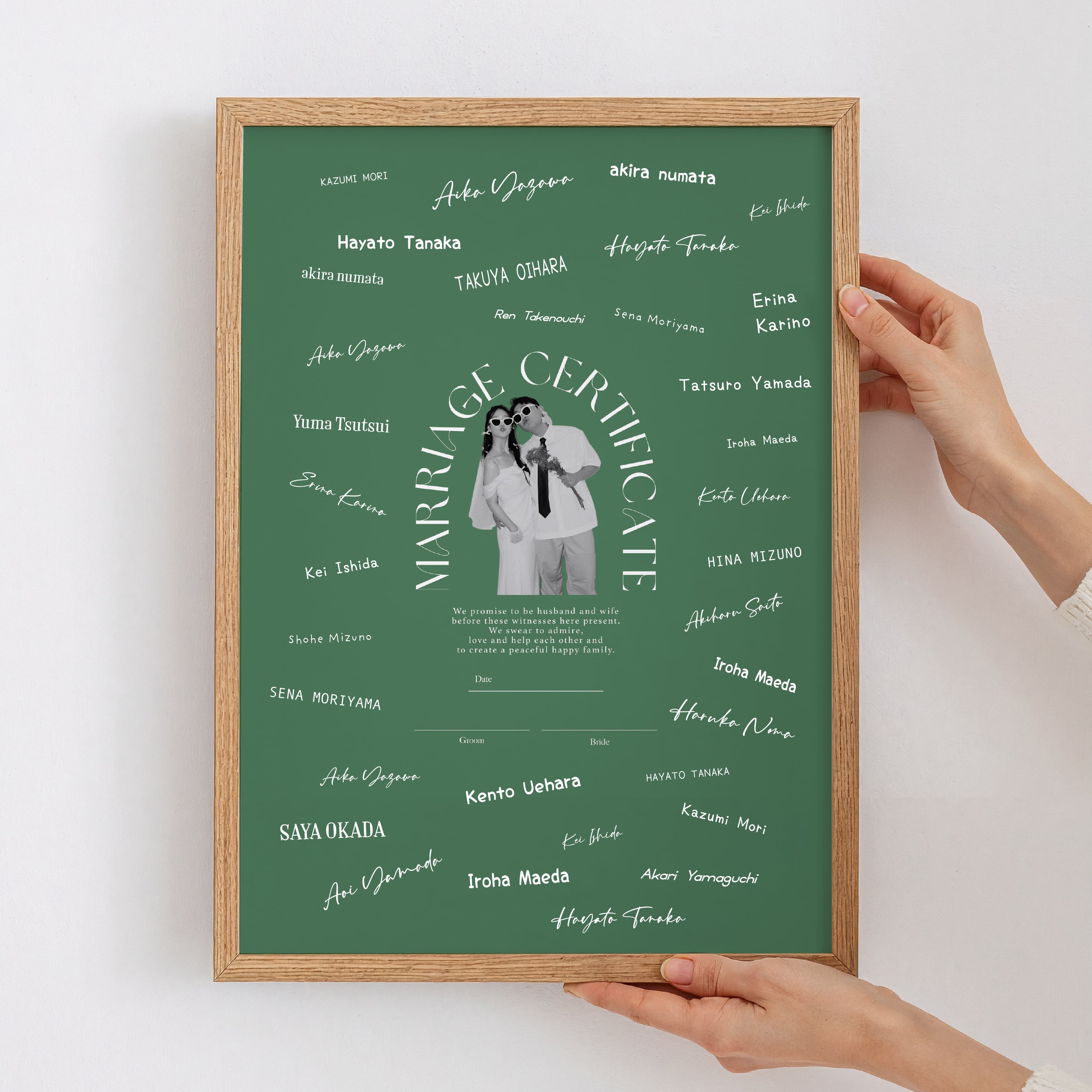 ゲストからのサインやメッセージで完成する、世界にひとつだけの結婚証明書。