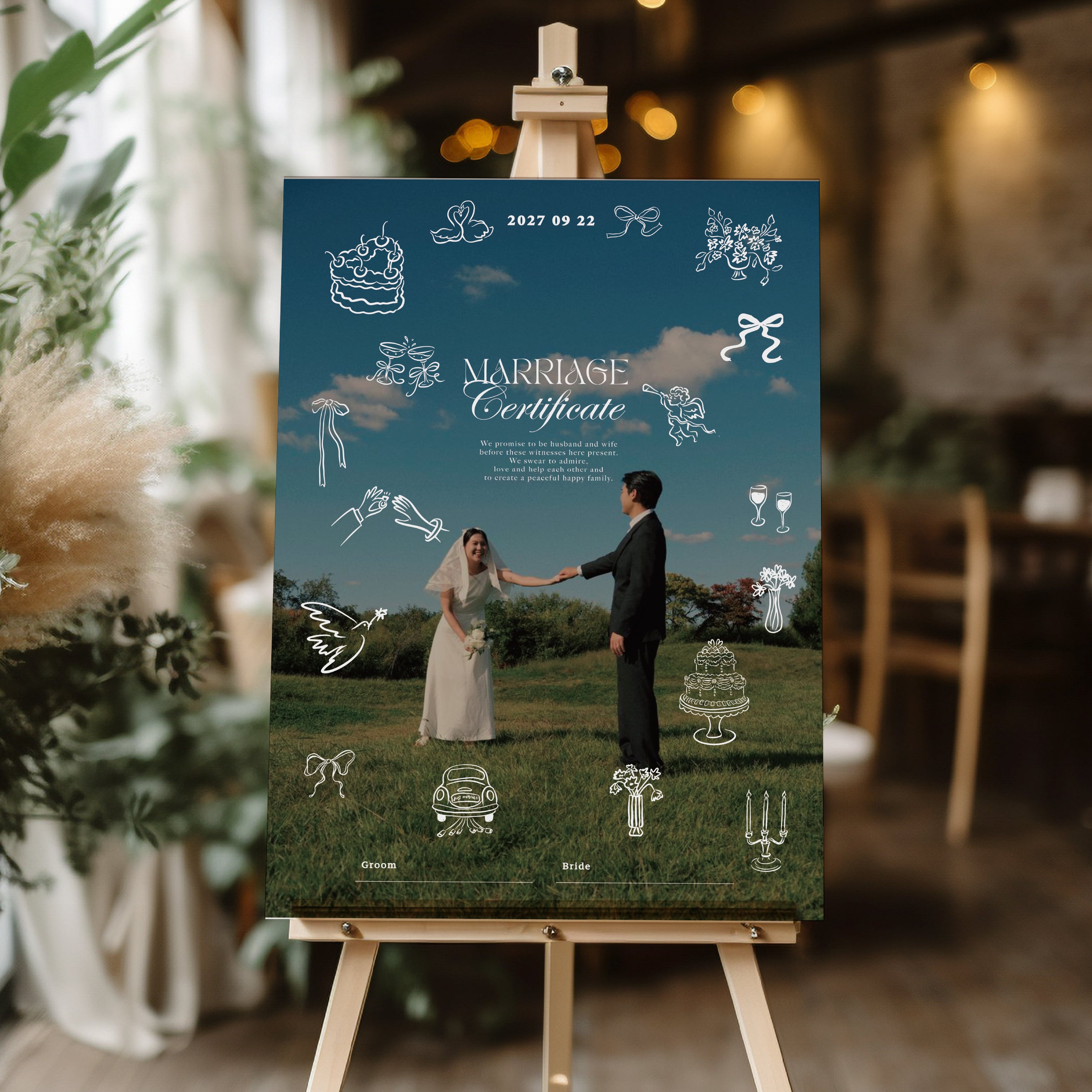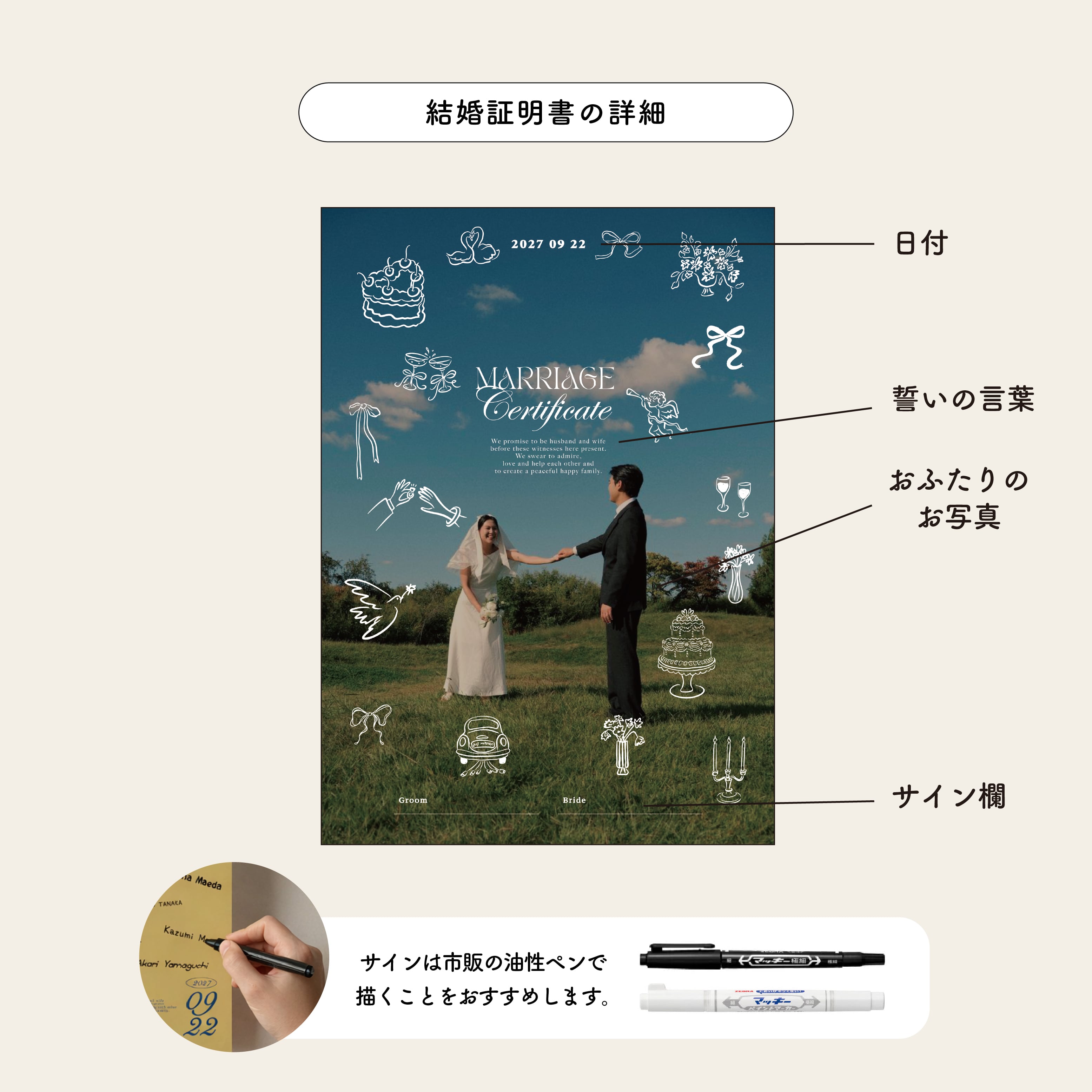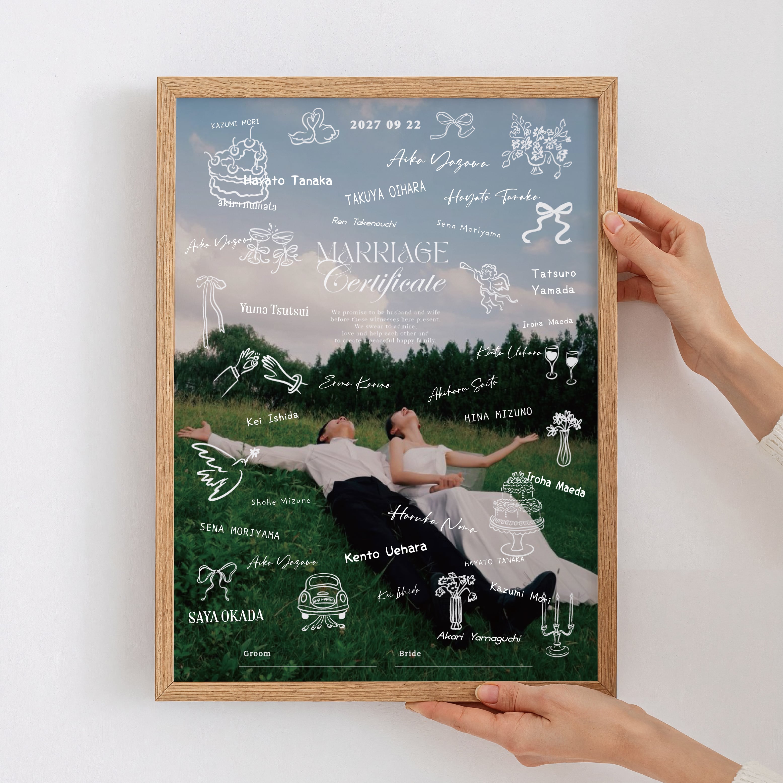 ゲストからのサインやメッセージで完成する、世界にひとつだけの結婚証明書。
